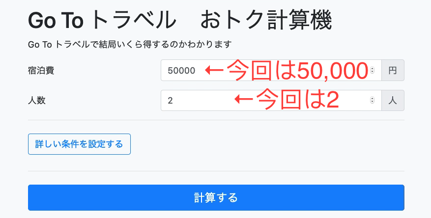 憧れのあのホテルがいくらで泊まれちゃうのか?是非Go To トラベルおトク計算機を使って遊んでみて下さい。