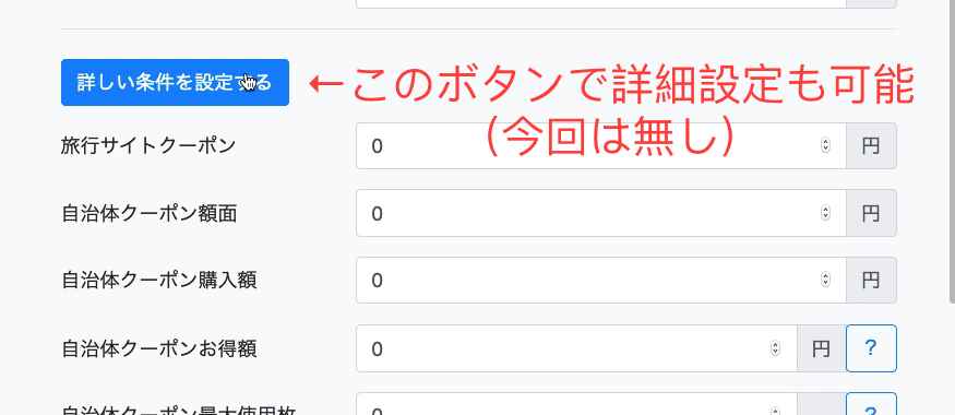 旅行サイトクーポンはじゃらんで2,000円分のクーポンを見つけたので2000と入力します。