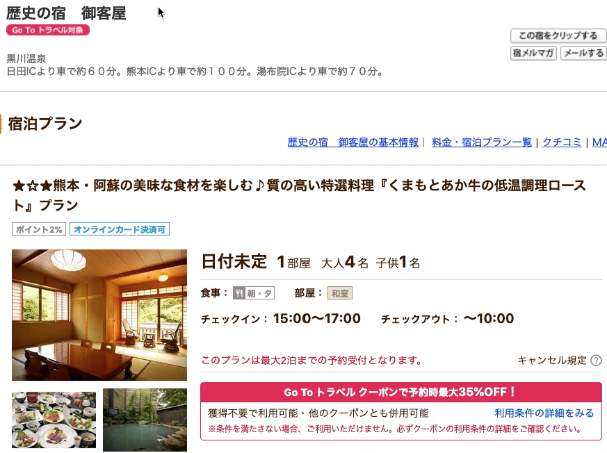例として使うのは黒川温泉御客屋のくまもとあか牛の低温調理ローストプランです!