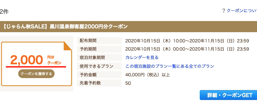 探してみるとじゃらんで2,000円のクーポンがありました!